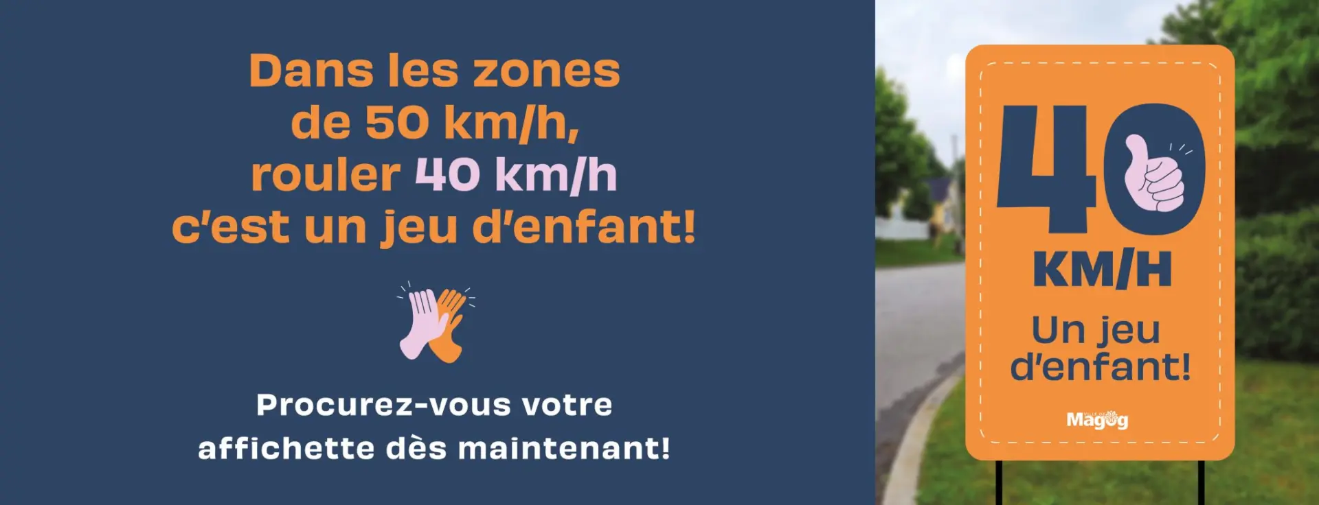 En 2024, la Ville de Magog a lancé une campagne de sensibilisation intitulée 40 km/h, un jeu d’enfant!