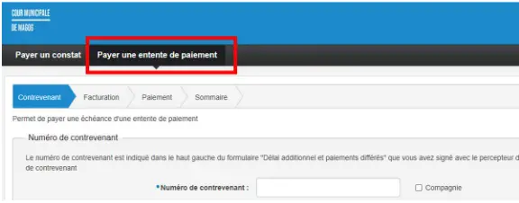Il est maintenant possible de payer une entente de paiement en ligne :