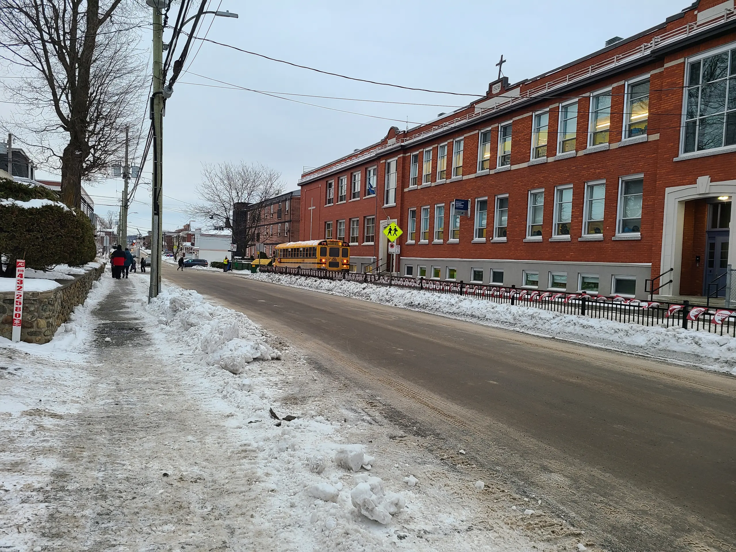 - À la traverse piétonnière devant l’école Brassard, sur la rue Saint-Patrice Ouest